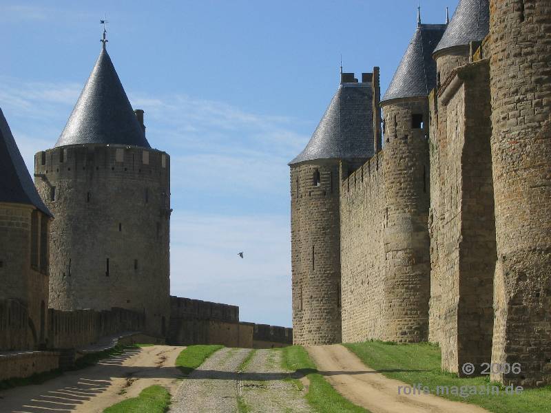 Die Cité von Carcassonne ist von doppelten Festungsmauern umgeben