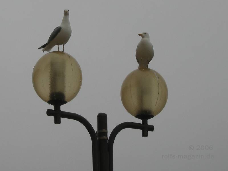 Möwen beobachten die Spaziergänger